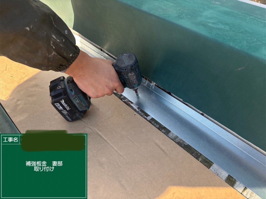 妻部や平場の取り合いには補強鋼板を取り付けていきます。